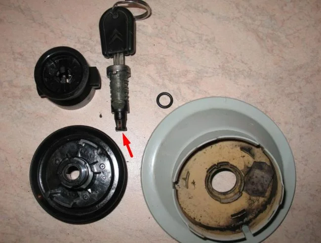 Выпала личинка замка крышки бензобака Ситроен С4