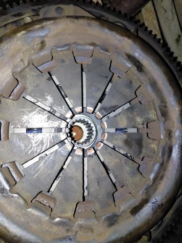 Выработка может и небольшая (по фото не очень понятно), она всегда бывает. Вот я смотрю на лепестки, на фото они как будто легли на ведомый диск, он буквально рядом. А это значит выжимать их уже некуда, отработала корзина.