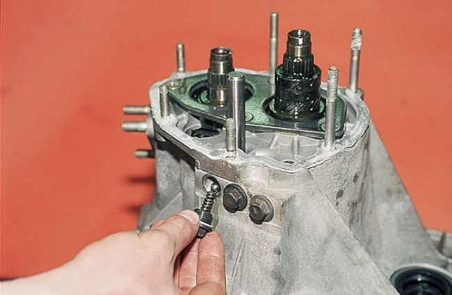 Вот которая заглушка на первую передачу сейчас на память не помню. Если теоретически не вычислите, тогда можно методом тыка. Будете откручивать заглушки не растеряйте пружинки и шарики.