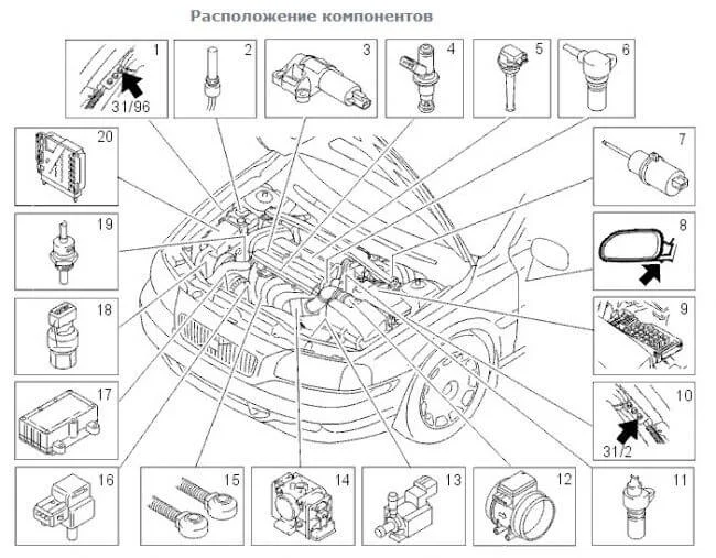 Вот только я не нахожу на этой схеме ДТОЖ (хотя ЕСТ, это он должен быть), он должен быть обязательно. И номер 19 может быть вполне он, только нарисован не совсем таким как должен быть, конкретно 2-х контактный. На щиток приборов показания должны идти с другого датчика, но возможен вариант — и с этого же датчика берутся показания на приборную доску тоже.