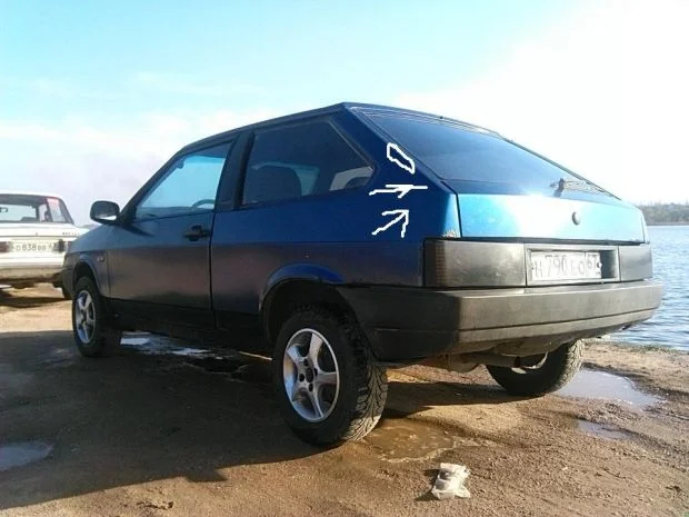 Скажите. Можно ли вытянуть заднее крыло, если где я белым овалом обвел, на этом месте складка большая и крыло вмято в сторону салона? ВАЗ 2109, на фото ВАЗ 2108, это я просто на картинке показал.