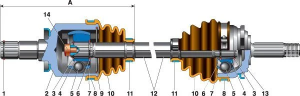 Знаю, что при такой работе иногда действительно вываливается(разбирается) внутренний шрус. Выскакивает или выламывается стопорное кольцо(на рисунке №9). Или выскакивает привод из коробки, когда выскакивает стопорное кольцо на валу(на рисунке №1).