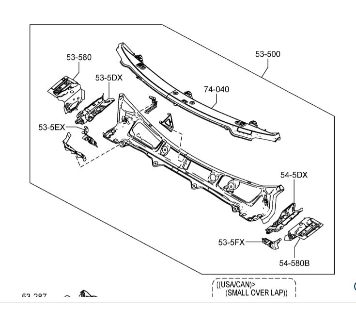 Прикрепляю схемы. Под жабо находится трапеция стеклоочистителей с мотором, а также трубки омывателя.