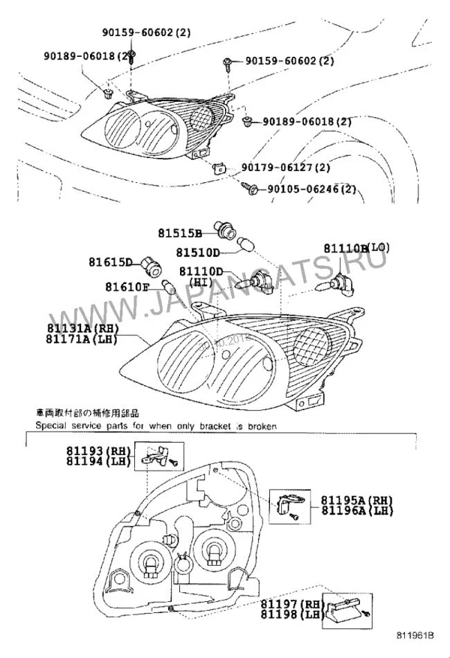 Как заменить лампы ближнего света Тойота Королла Версо?