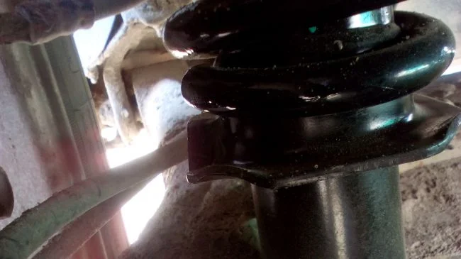 Фото не очень удачно, но как я понял то что пружина просто не дошла до нижних пазов, потому что ширина стойки не позволяет ей сесть глубже. Или я ошибаюсь? Если оно так и есть, то так не должно быть