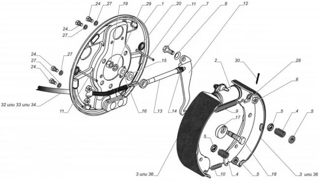 На всякий случай напишу информацию: №18 — это болт с эксцентриком для развода(регулировки) колодок.