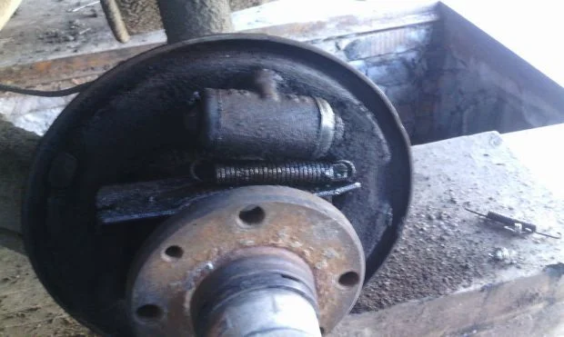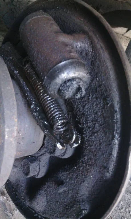 Снял тормозной барабан, а там вот что. Наверное тормозной цилиндр под замену?