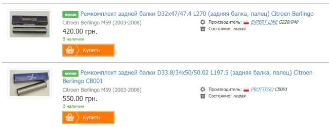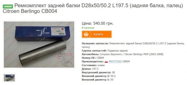 Какие номера пальцев задней балки Ситроен Берлинго?