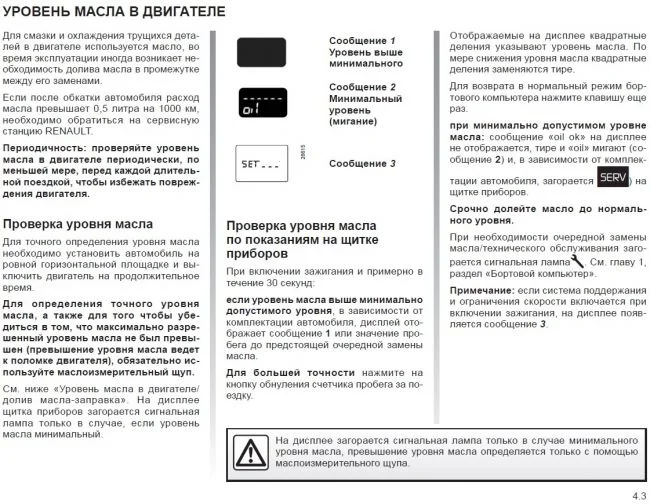 Загорается надпись "OIL" и сигнальная лампа "SERV" в Рено Кенго