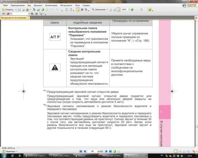 Как показывается индикация на Тойота 200?