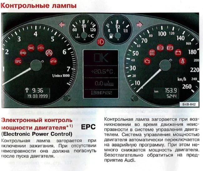 Загорелась ламочка "Электроника двигателя" в Ауди А6 С5