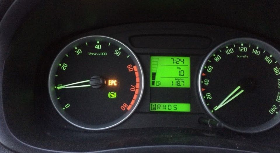 Обратите внимание, на Фабия 2 первых годов выпуска был “глюк” в программном обеспечении и индикатор EPC высвечивался при перегорании ламп в стоп сигналах.