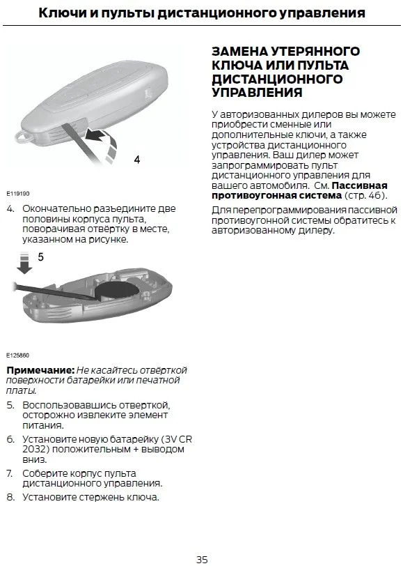 Батарейка (3V CR 2032) должна быть установлена положительным + выводом вниз, перепроверьте это. Автомобиль можно открыть механически, ключом из брелка и пользоваться авто. Если аккумулятор автомобиля не разрядился, то проблема в ключе, возможно достаточно будет провести инициализацию ключа.
