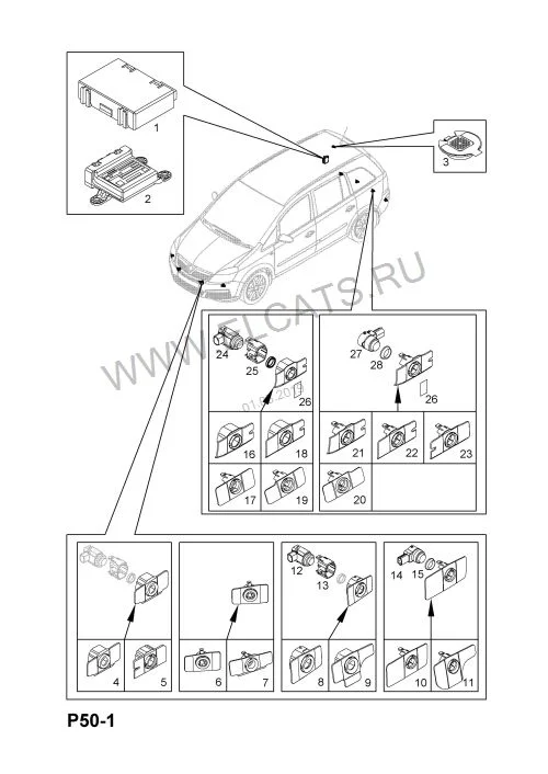 Где стоит блок управления парктроником в Опель Зафира Б?