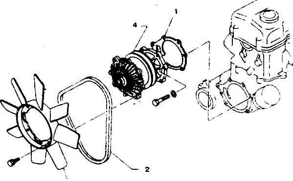 А он там есть. Там у вас наверное муфта с терморегулятором. Когда нагревается мотор, происходит зацепление муфты.
