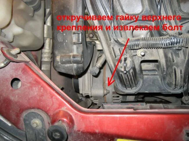 Снять: пластиковую защиту двигателя и бачок омывателя (ведь лучше будет открутить несколько лишних гаек чем потом мучатся). Так что с моторчика омывателя снимай разъемы и ключами на «8» и «10» откручивай гайки крепления бочка. Бочек прикручен в двух местах.