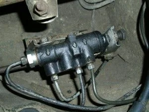 На корпусе стрелки отлиты. Входные — от главного тормозного, стрелки на выход — к колёсам.