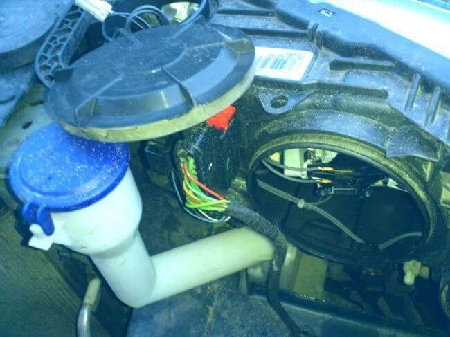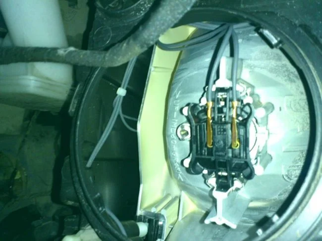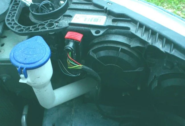 Небольшая хитрость: когда залезаешь рукой под фару и при этом держишь в руке ключик, нужно руку совать под проводом в пластмассовом рукаве, который проходит прямо под фарой, иначе не будет места для маневра.