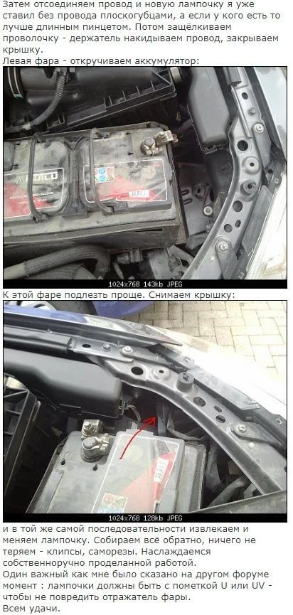 По автомануалу надо снимать бампер, потом блок-фару. Но вот предлагаются варианты без снятия бампера, с фотосессией.
