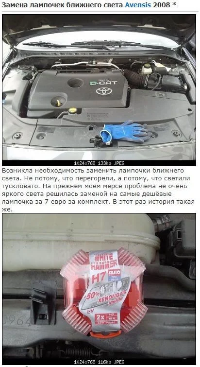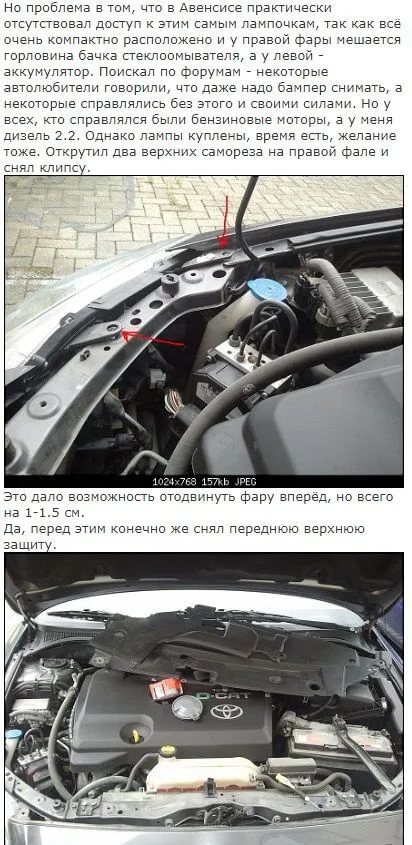 Как заменить лампы H7 в Тойота Авенсис 2?