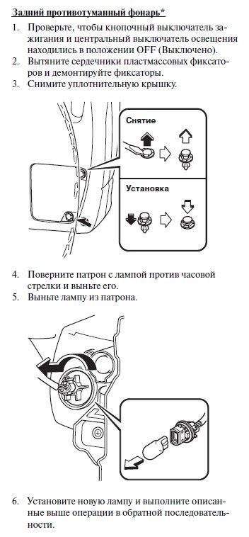 Как заменить лампу заднего противотуманного фонаря Мазда СХ-5 2?