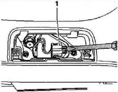 Разблокировать и отсоединить штекерный разъем -1-. Отжать патрон лампы заднего фонаря -1- осторожно с помощью подходящей отвертки из фиксатора.