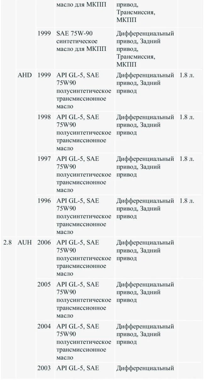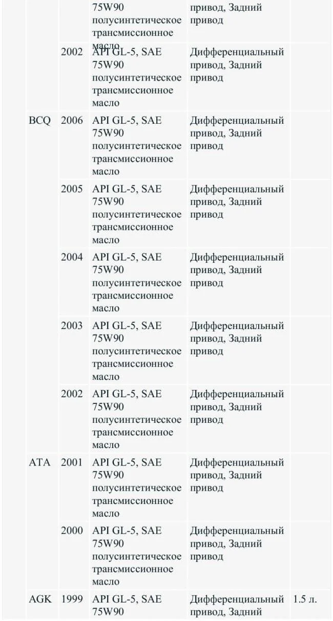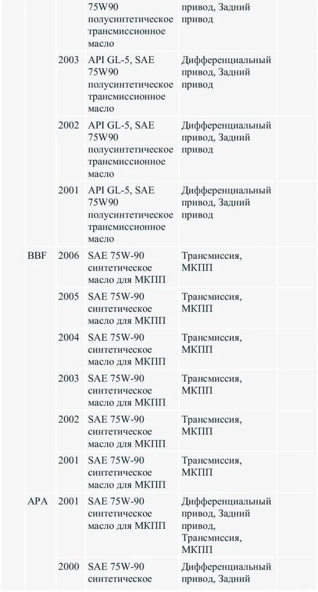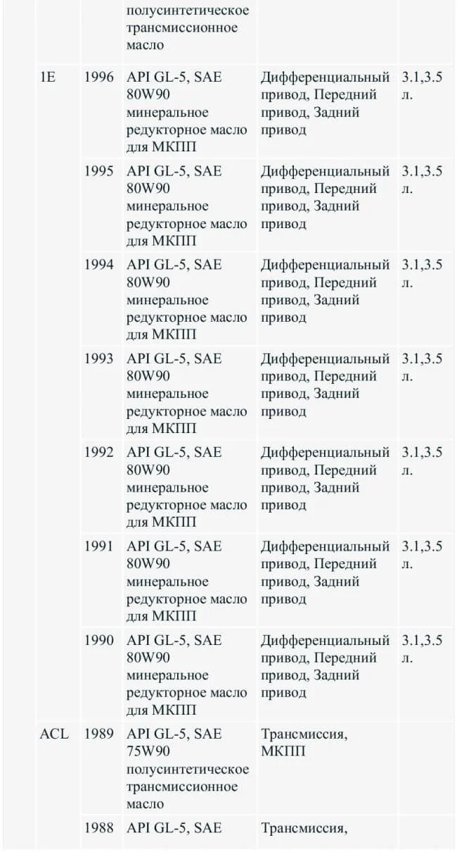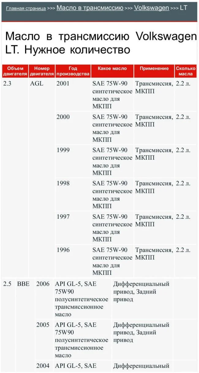 Вот выбирайте в таблице самостоятельно масло в трансмиссию Volkswagen LT…