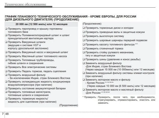 Вот выдержка из руководства (для бензинового и дизельного двигателя отдельно).