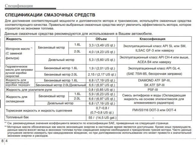 Сколько нужно масла в двигатель Киа Церато 2.0 SRDI?