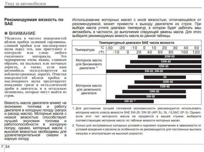 Производителя можете выбрать любого проверенного (я лично Мобил лью), классификация масла и вязкость указана в выдержке из руководства (API SJ, SL или выше, ILSAC GF-3 или выше, вязкость оптимальная 5W-30).
