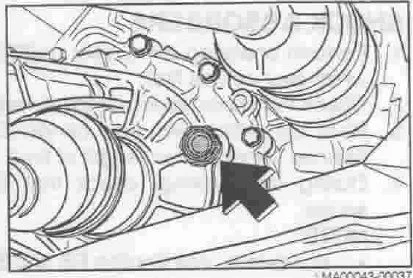 Пробка для заливки масла, она же и контрольная, находится сбоку. Показано стрелкой.