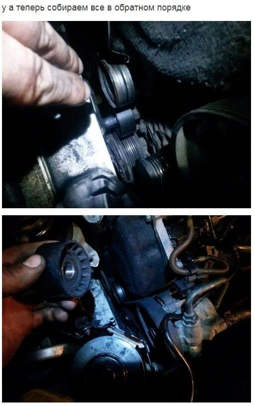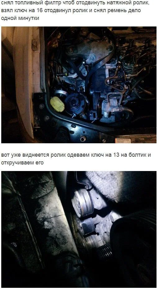 Вот фотосессия замена ролика и о снятии ремня генератора