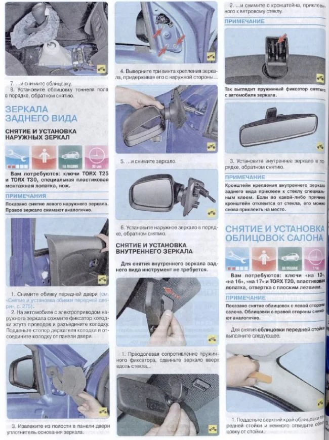 Как и в какой последовательности следует снимать правое зеркало? Какие есть нюансы?