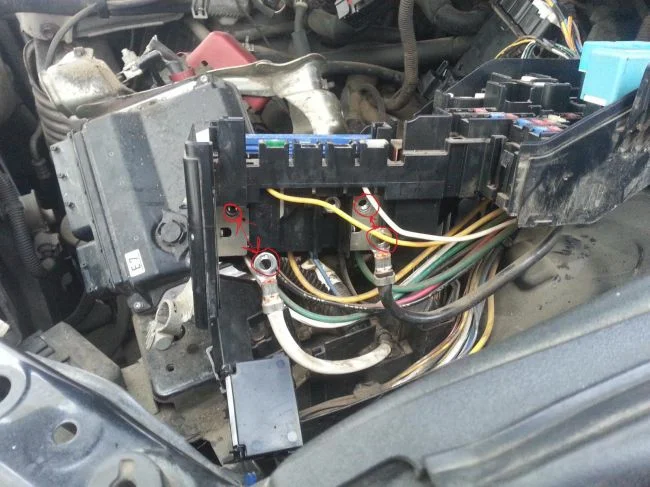 Чтобы её вытащить, надо сначала открутить 3 болта снизу под блоком предохранителей и вытащить их, только после этого и планка вытянется из гнезда.