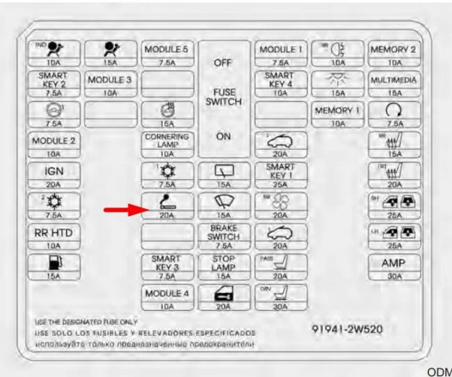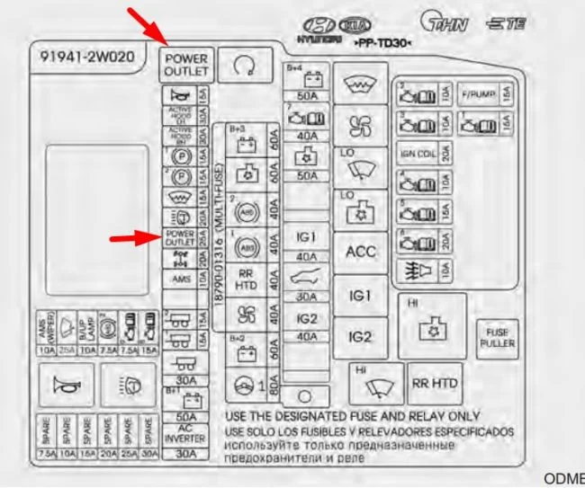 Автомобиль из Кореи, с корейским, соответственно алфавитом. Нет питания в розетке рядом с прикуривателем. Какой предохранитель?