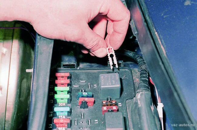 Как вытащить 10 амперный блок предохранителя звукового сигнала HORN для замены?