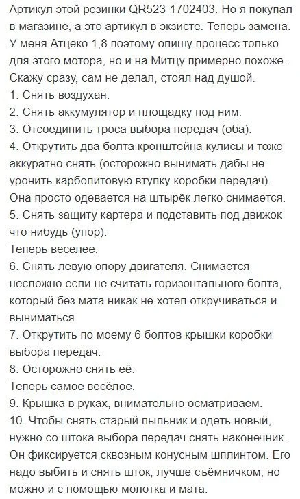 Механизм переключения передач и замена манжеты штока Chery Tiggo