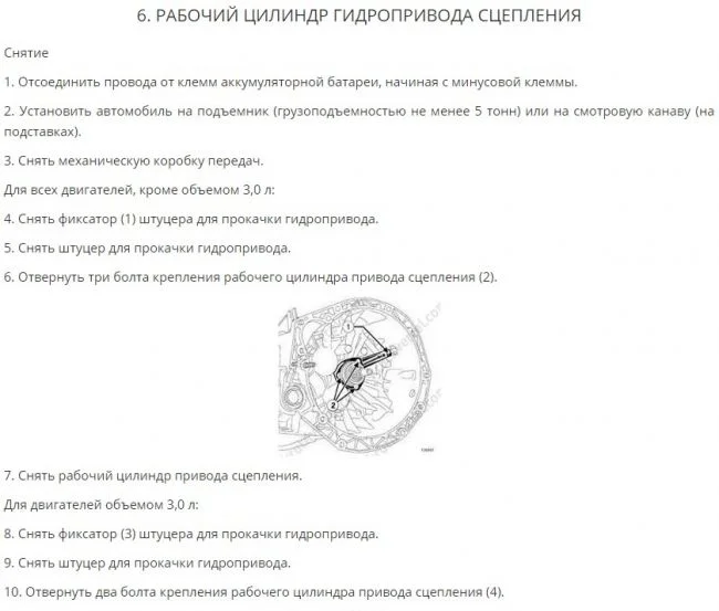 Ниже описан процесс замены рабочего цилиндра сцепления.