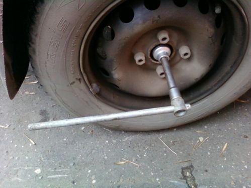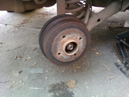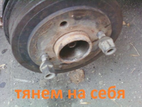 - срываем ступичную гайку, поддомкрачиваем сторону, снимаем колесо