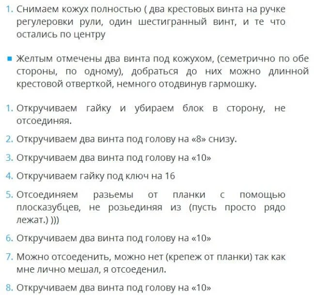 Два болтика под рулём сверху, очень сложные были, много времени на них потратили, спасибо за подсказку