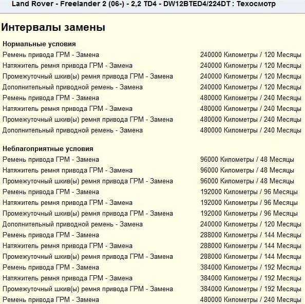 Интервал замены ремня ГРМ Лэнд Ровер Фрилендер 2