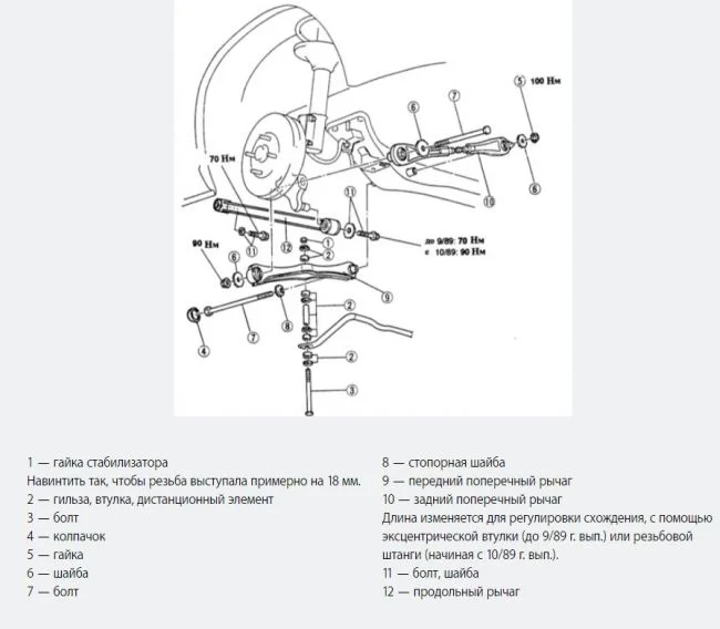Сайлентблоки разные, информация как в первом ответе, по моменту затяжки добавил схему с указанием момента.