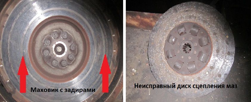 И по плоскости маховика, где прилегает диск сцепления. Там если нет износа либо износ малозаметен, то маховик не трогаем. Если же на нём глубокие борозды, волны, задиры, то его можно снять и выровнять точением на токарном станке или заменить на новый.