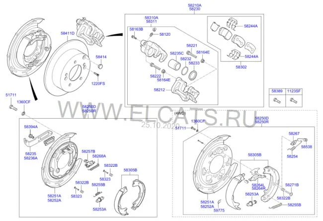 Колодки я бы взял Sangsin SP 1187, а вод для ручника часто берут LPR 01116, можно оригинал Hyundai/Kia 58305-2SA30.