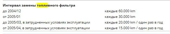 Срок замены топливного фильтра указан тут.