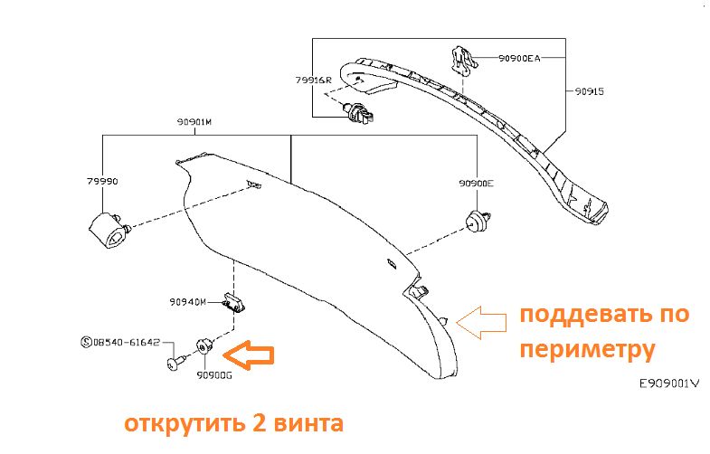 Замок снимается и монтируется через внутреннюю часть крышки багажника. Для этого нужно снять обшивку, она крепится 14 клипсами, но перед этим снимите ручку внутреннюю багажника, крепится на двух винтах.