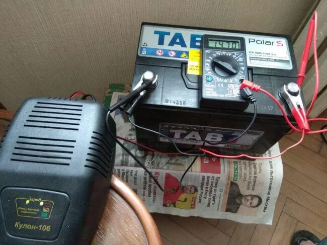 Сегодня купил мультиметр(-7 грС, а/м стоял 2 суток), напряжение 12,48 в. Есть з/у Кулон-105.