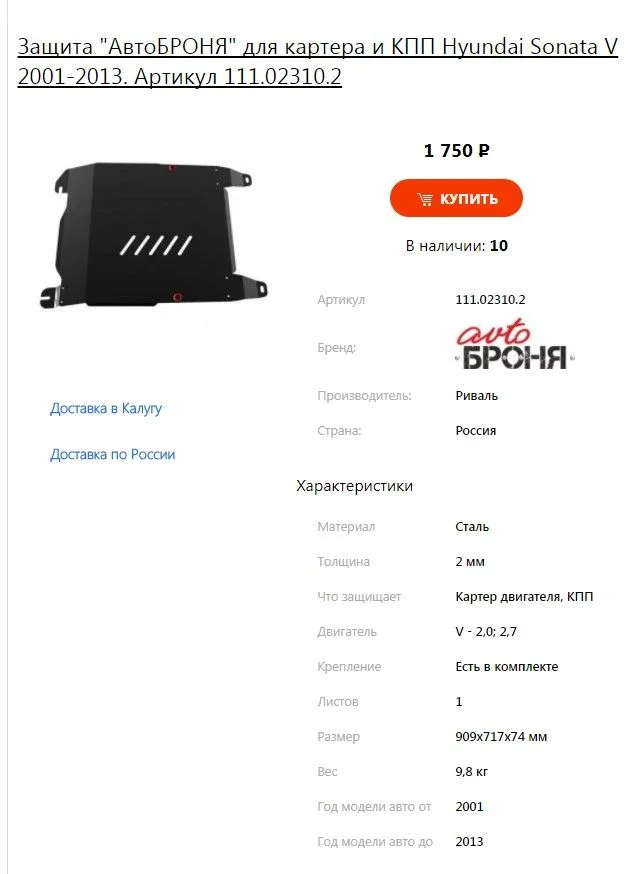 Можно ли подобрать защиту двигателя от ВАЗ на Хундай Соната 5?