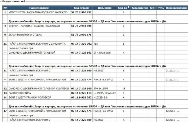 Два каталога запчастей выдают по указанному вин номеру, можете проверить, раздел Оснащение кузова, дополнительные элементы моторного щита. Нужно посмотреть на авто, какая форма и что сломано, будет яснее.