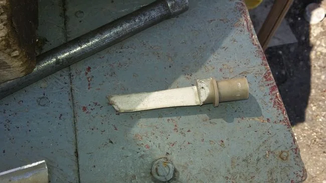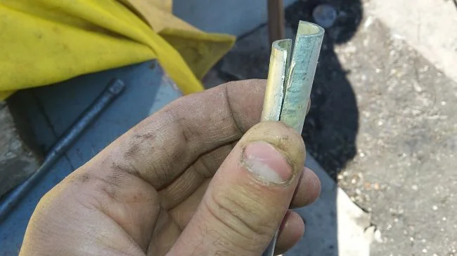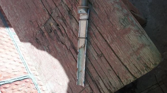 Далее делаем надпилы(только не сильно глубокие) и слегка расширяем трех гранным напильником! Для того чтоб в этих местах мы могли хорошо прижать вал к трубке, а не просто привязать.